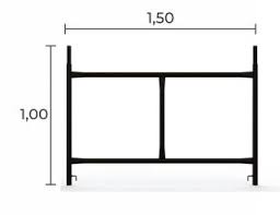 O Andaime Tubular 1,00 x 1,50m é um módulo padrão de construção, feito de tubos de aço carbono (como SAE 1010/1020), com altura de 1m e largura de 1,5m
