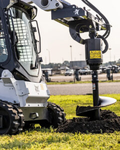 O perfurador hidráulico para serviço pesado oferece velocidade e precisão vertical perfeita. Com junta articulada, possibilita que ele fique perfeitamente na vertical, tanto em terrenos planos quanto em terrenos irregulares. Toda a unidade de acionamento acompanha o bit dentro do buraco, acrescentando 30 cm a mais de profundidade de escavação do que uma unidade padrão. É a ferramenta ideal para perfuração de buracos para postes, píeres, colunas e árvores em todos os tipos de condição do solo e várias brocas para atender às exigências de largura do buraco.